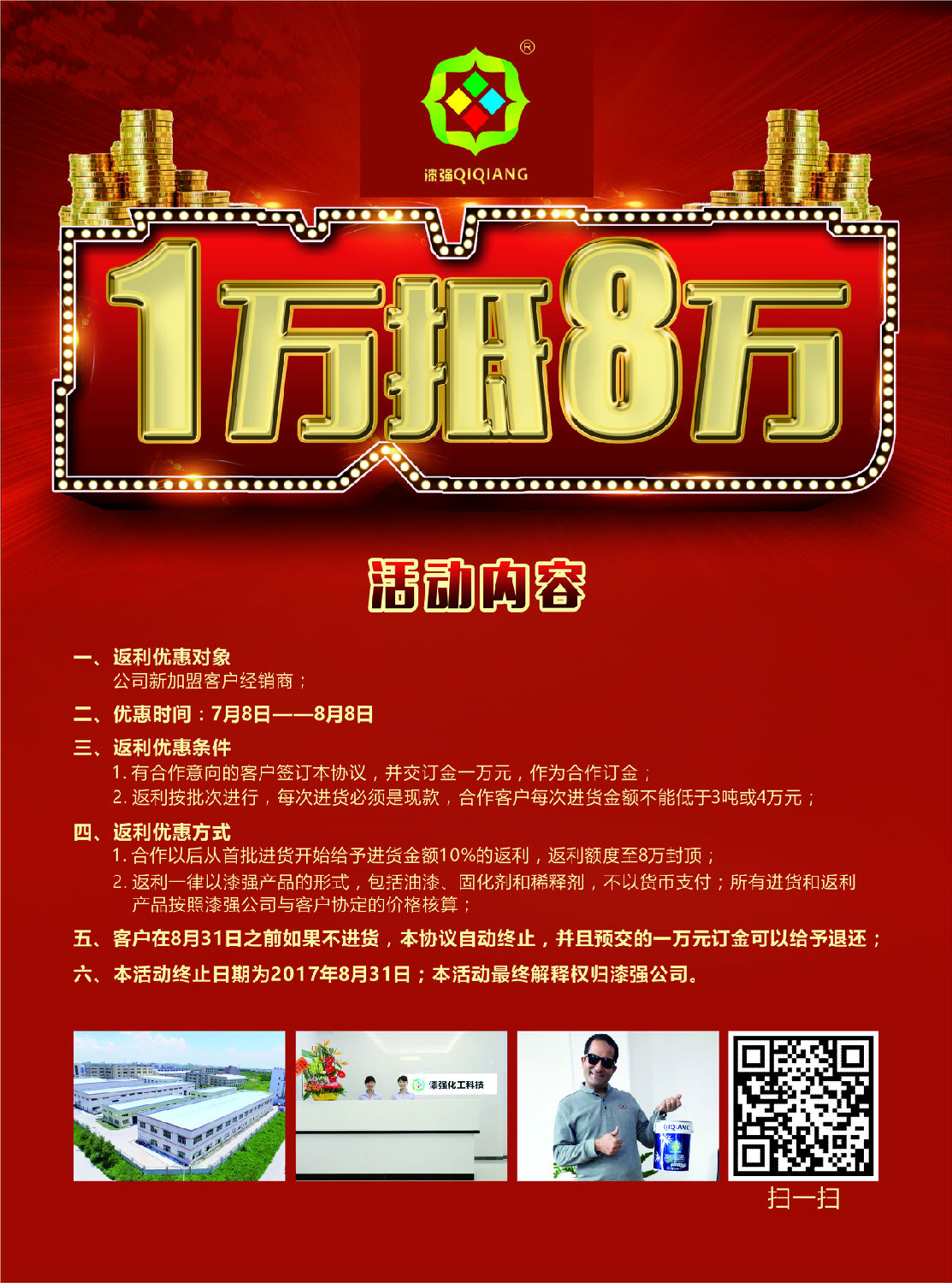 漆強(qiáng)化工當(dāng)然不會(huì)錯(cuò)過這次建材屆的盛事!特地推出重磅優(yōu)惠活動(dòng),詳情請(qǐng)聯(lián)系客服咨詢!