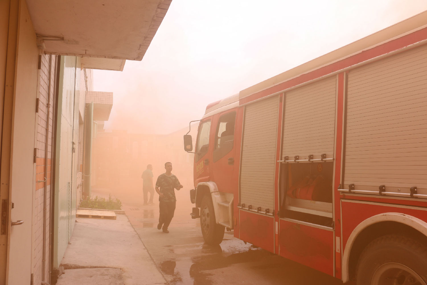 演練內(nèi)容為木器漆車間附近發(fā)現(xiàn)火情。演練準時開始:發(fā)現(xiàn)“火情”后,公司立即啟動火災(zāi)應(yīng)急預(yù)案,保安部即時撥打119報警,義務(wù)消防隊及時趕到現(xiàn)場并利用滅火器撲救初期火災(zāi),緊急疏散全體員工有序撤離事故現(xiàn)場。