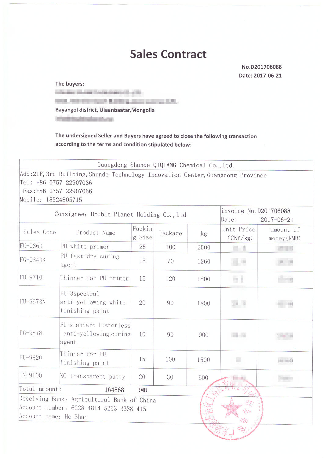 質(zhì)量是根本,環(huán)保無國界。“漆強(qiáng)環(huán)保家具漆”積極響應(yīng)國家“一帶一路”發(fā)展戰(zhàn)略,在海外市場開拓、銷售服務(wù)上持續(xù)發(fā)力,產(chǎn)品遠(yuǎn)銷東南亞、非洲等多個(gè)國家和地區(qū),今天漆強(qiáng)的環(huán)保家具漆又傳出捷報(bào),客戶通過網(wǎng)絡(luò)搜索環(huán)保家具漆了解到漆強(qiáng)的產(chǎn)品后,經(jīng)過多家的產(chǎn)品對比使用,苛刻的條件使用,最終選擇了漆強(qiáng)化工,這張來自馬背上的古國——蒙古的訂單,首次下單就是超過10噸的量!