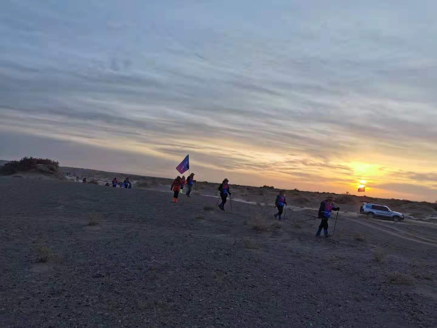 沖刺最后22公里,早晨的天還未亮,征戰(zhàn)戈壁德勇士們就開始出發(fā)了,一步步朝著終點邁進,經(jīng)過體力、耐力和意志不斷經(jīng)受考驗,對于本就三天勞累不堪與負傷的身體更是難以忍受。漆強團隊他們堅信“只要出發(fā),必定到達”。